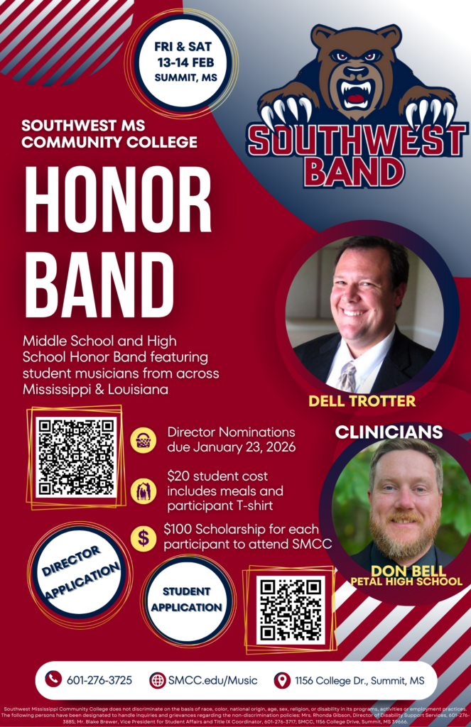 We are excited to announce that the SMCC High School Honor Band audition etude is now available! Here you will find the all information you need to prepare for your audition.