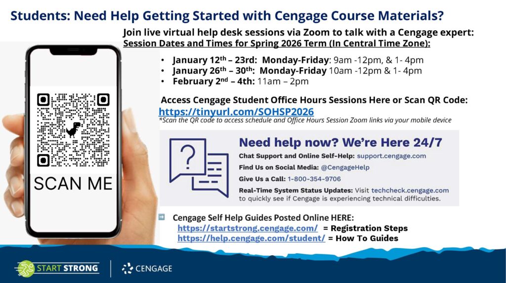 Access Cengage Student Office Hours Sessions Here or Scan QR Code: